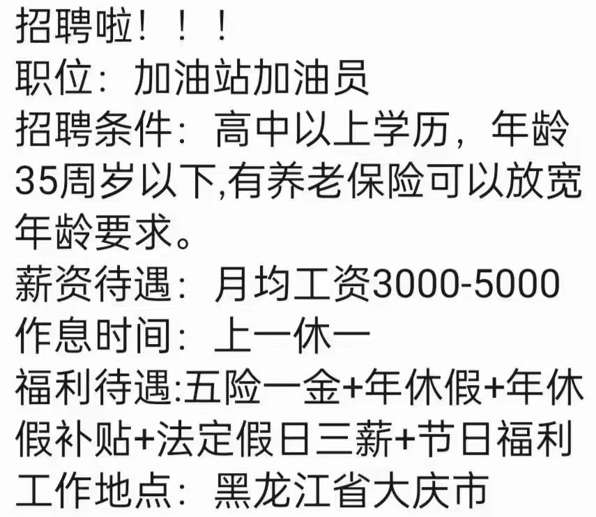 中石化加油員,大慶市區(qū)內。