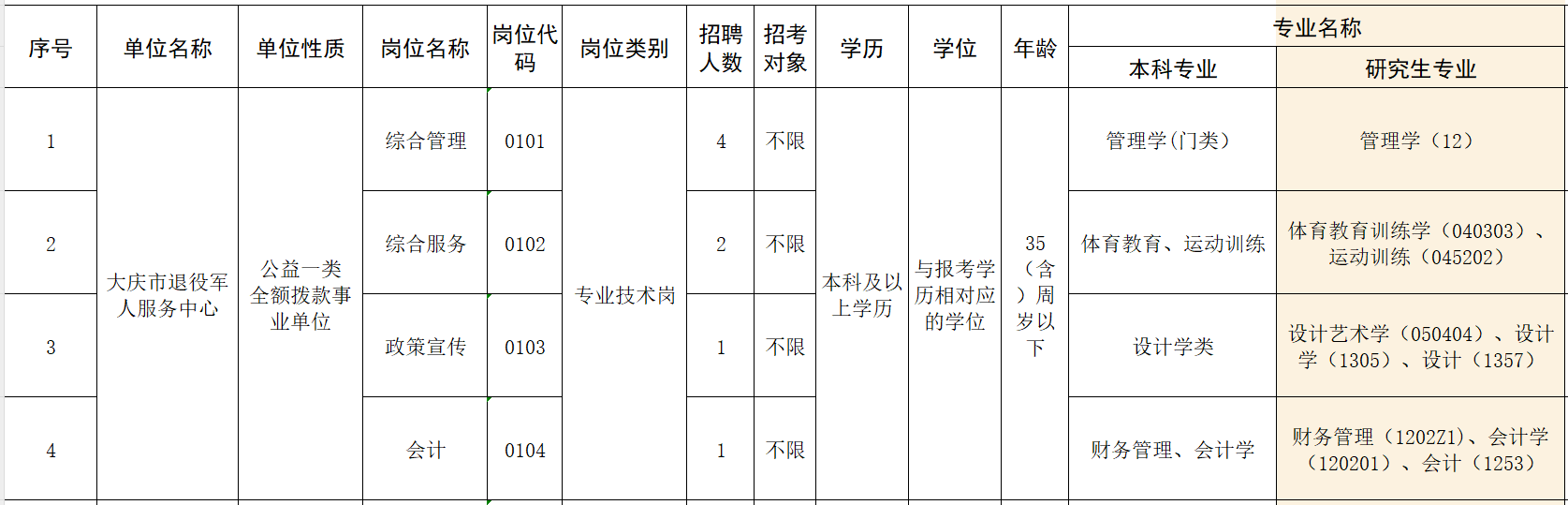 為加強(qiáng)大慶市退役軍人事務(wù)局所屬事業(yè)單位人才隊(duì)伍建設(shè),滿(mǎn)足人員配備要求,依據(jù)事業(yè)單位公開(kāi)招聘有關(guān)規(guī)定,面向社會(huì)公開(kāi)招聘工作人員,現(xiàn)將有關(guān)事宜公告如下: