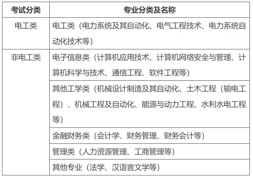 筆試分為電工類、非電工類(電子信息類、其他工學類、金融財務類、管理類、其他專業(yè))兩類,采取閉卷方式進行??荚嚧缶V詳見附件。