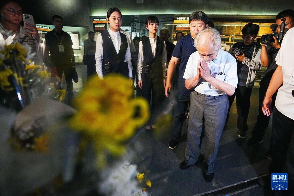 8月13日,清水英男在侵華日軍第七三一部隊罪證陳列館內(nèi)的殉難者名單前祈禱。
