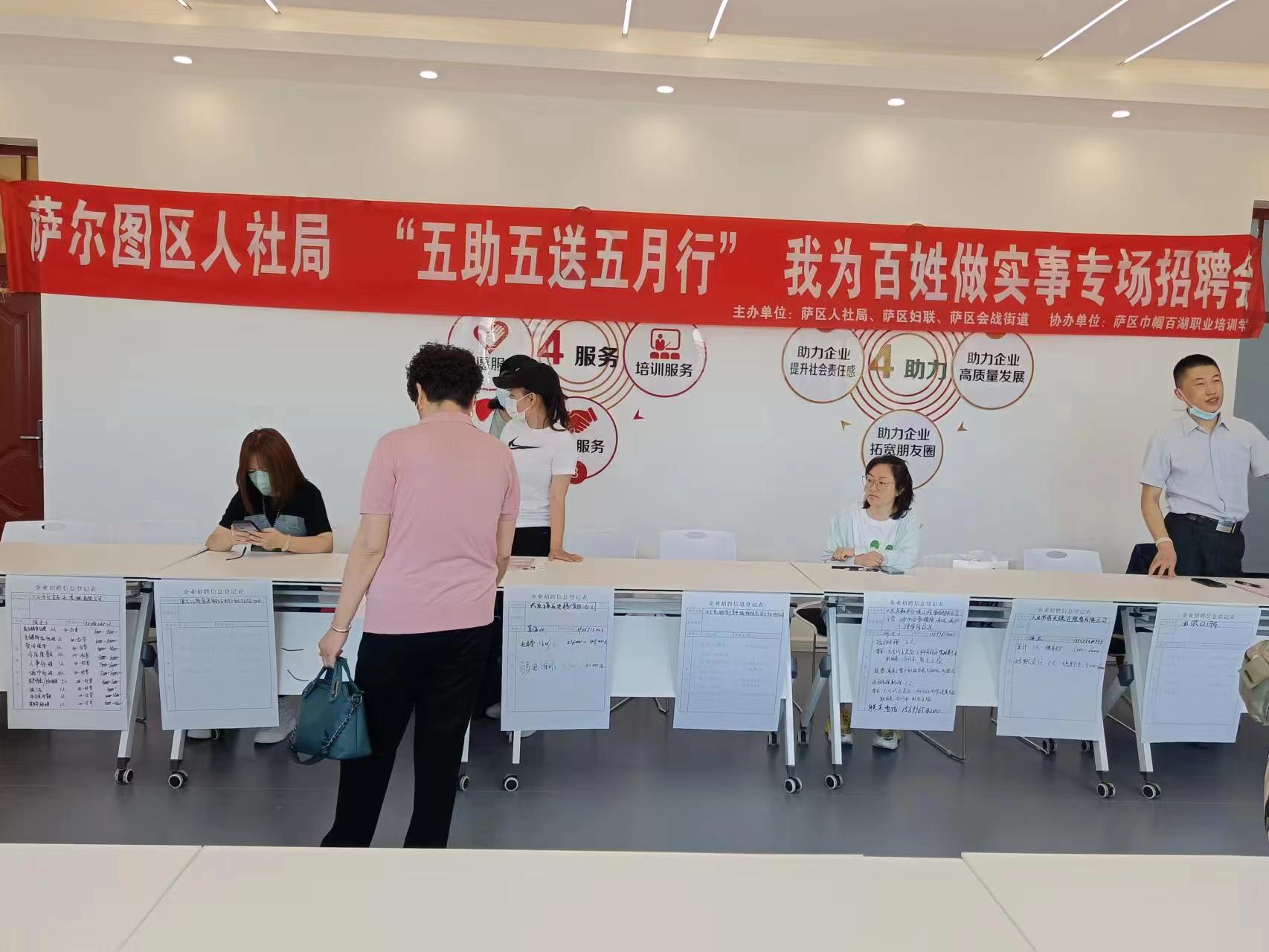 5月24日9:00-11:00時,在薩爾圖區(qū)人才市場(原二十三中二樓)舉行了薩爾圖區(qū)人社局“五助五送五月行”我為百姓做實事專場招聘會,本次招聘會由薩爾圖區(qū)多家單位聯(lián)合舉辦,共有45家企業(yè)提供就業(yè)崗位50余個。在本次招聘會中,國盛人力共接待了部分求職者50人次的咨詢,提供了20余個崗位,其中有25人填寫了個人求職信息。